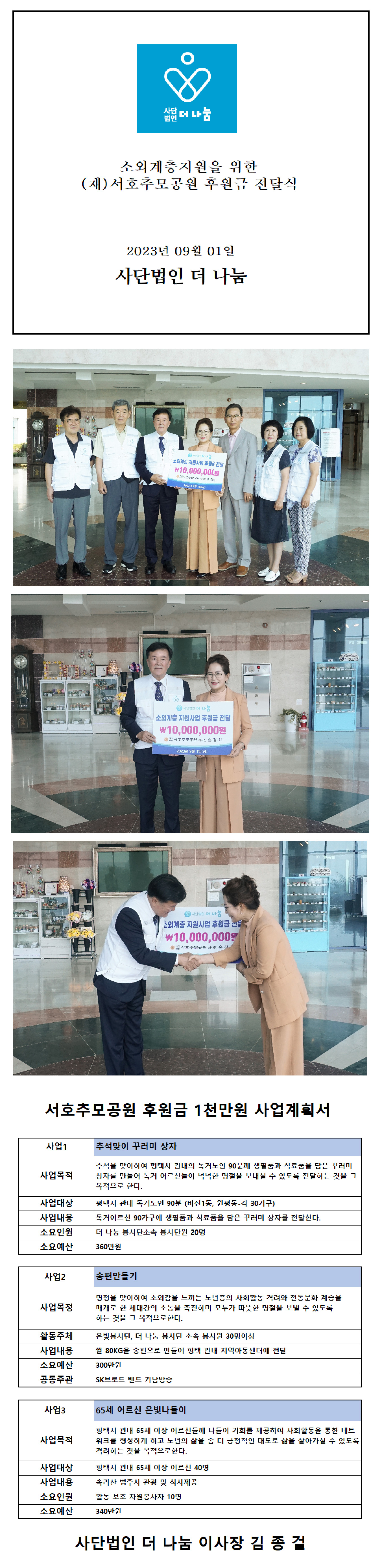 이를 통해 사단법인 더 나눔이 관련 사업을 진행함으로써