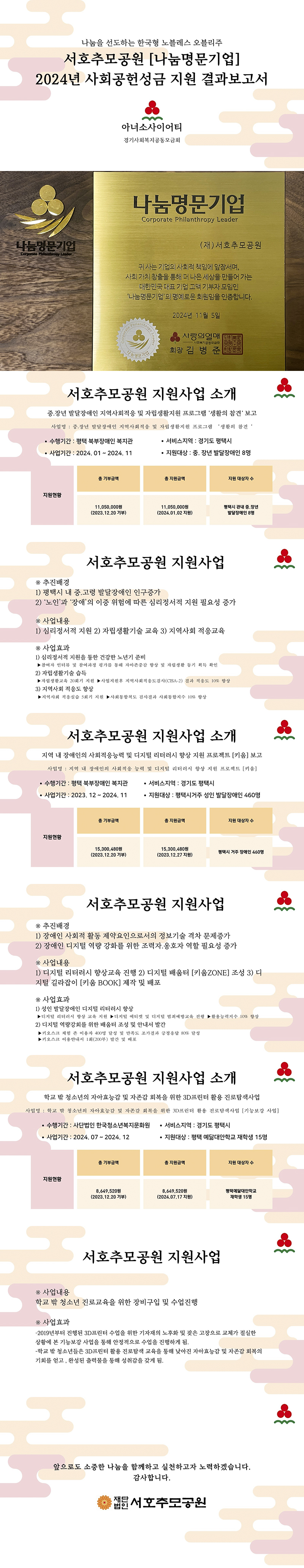 서호추모공원 사회공헌 성금 지원 및 결과 보고서