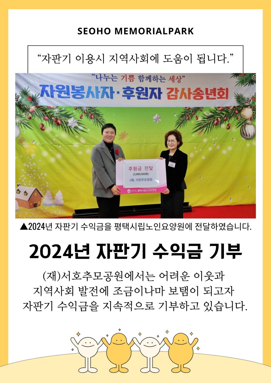 2024년 자판기 수익금 기부 페이지 정보 작성자 최고관리자 댓글 0건 조회 1,518회 작성일 25-01-05 12:19 본문 . 목록 다음글 서호추모공원 어항설치 댓글목록 댓글목록 등록된 댓글이 없습니다.