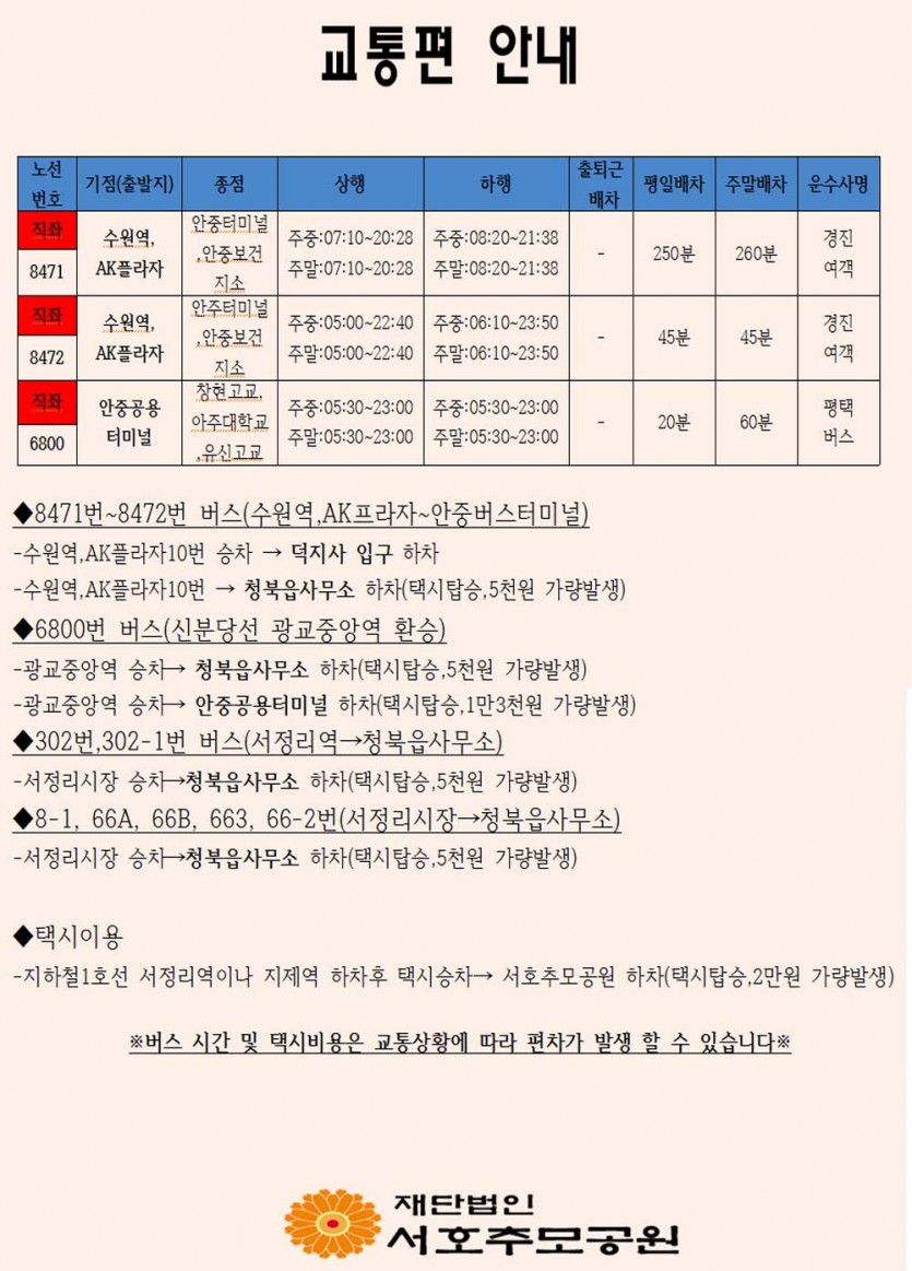 여객자동차 운수사업법 제82조(자가용자동차의 노선운행 금지)법에 따른 시설내 셔틀버스가 중단 되였음을 알려드립니다.